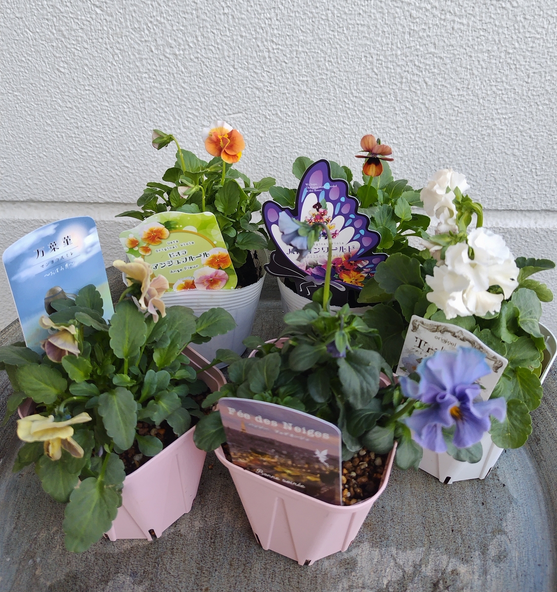 育種ビオラ 今年人気アソート5株セットC【フェデネージュボンソワレ・ビオレアンジュフルール・ウエディングドレス・万葉菫・パピヨンワールド】】