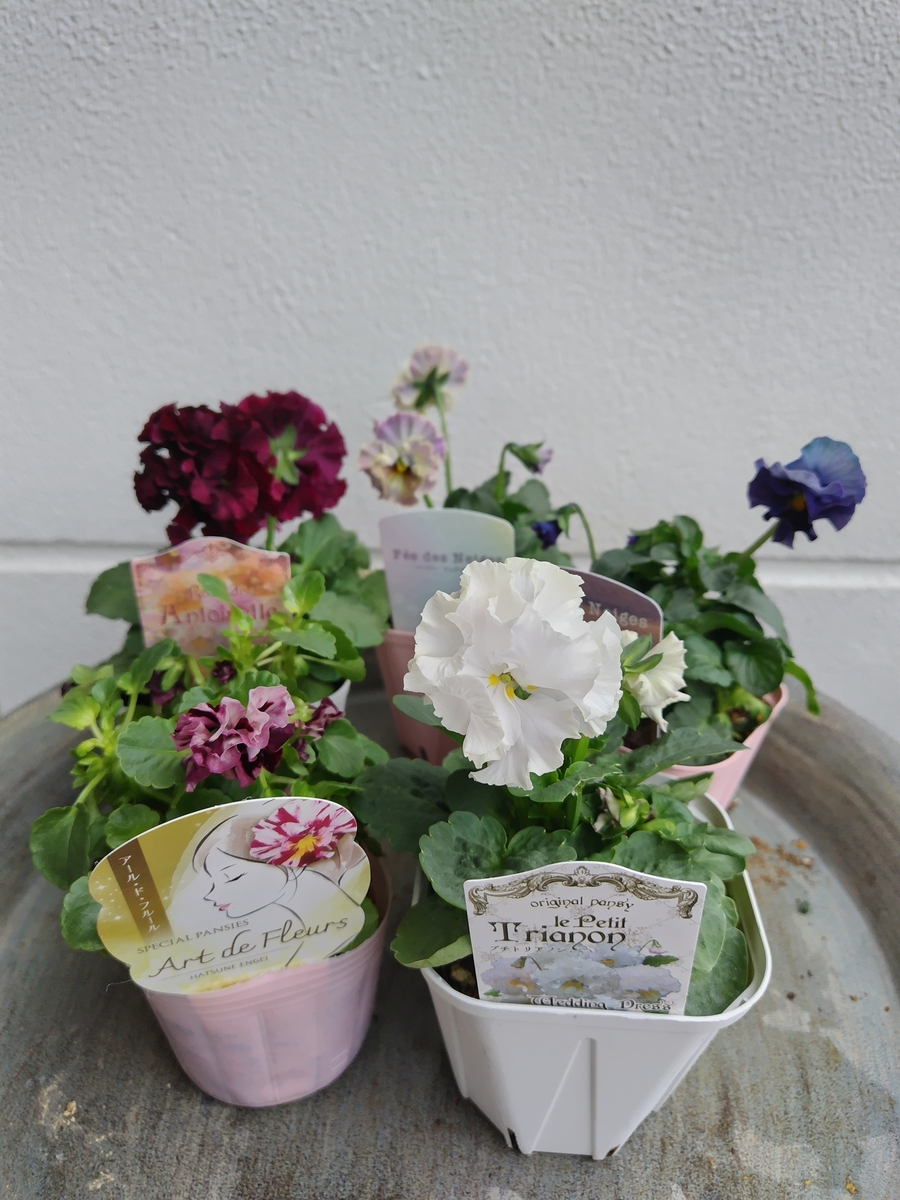 育種ビオラ 今年人気アソート5株セットF【フェデネージュボンソワレ・アールドフルール・フェデネージュトイプー・ウエディングドレス・アントワネット】