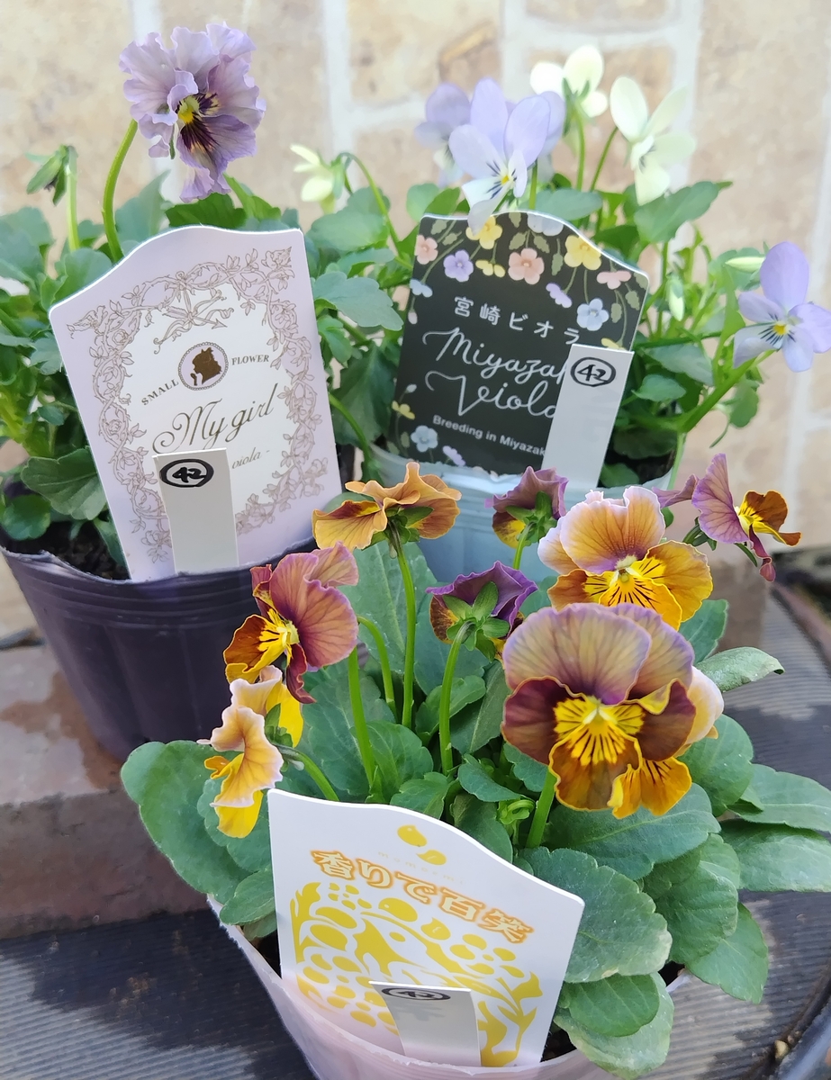 育種ビオラ 今年人気アソート3株セット42【マイガール、宮崎ビオラ・白いウサギ、香りで百笑】