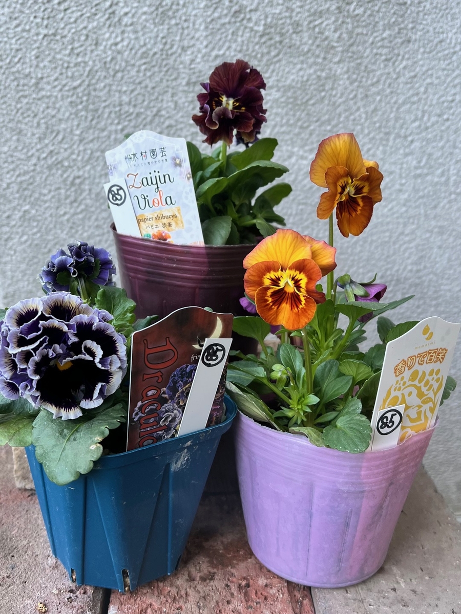 育種ビオラ 今年人気アソート3株セット81【ドラキュラ、香りで百笑、ザイジン】
